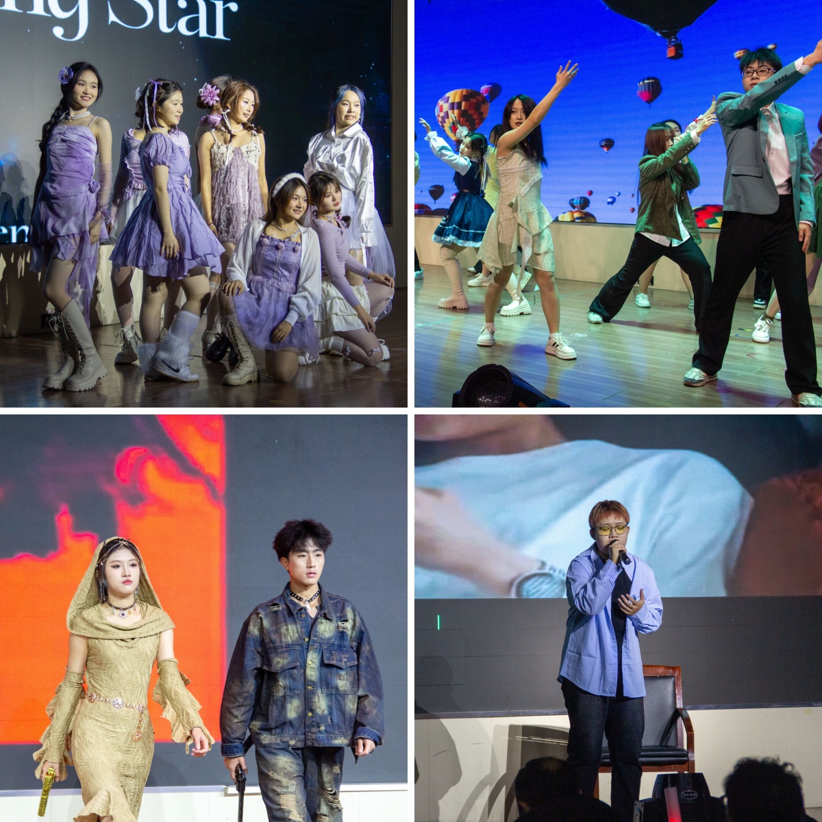 晚会分为三大篇章,共十一道节目,涵盖了声乐、器乐、舞蹈、小品、相声等多种艺术形式,充分展现了机电学子广博的文艺才华与蓬勃的青春活力。晚会在辅导员杨治宽与李一杰深情演绎的《海阔天空》中拉开序幕,那激昂的旋律瞬间点燃了现场的氛围,也激励着机电学子们无惧前路、追求理想。